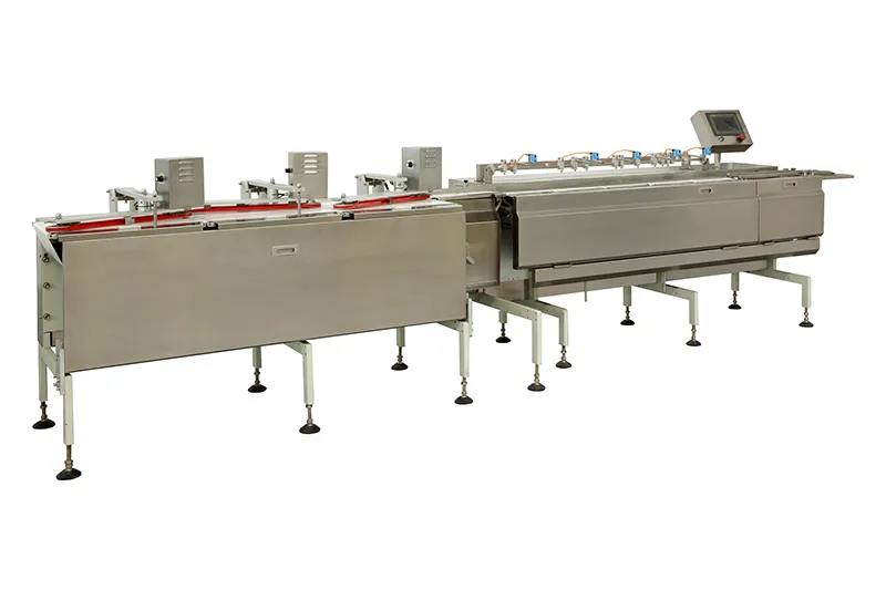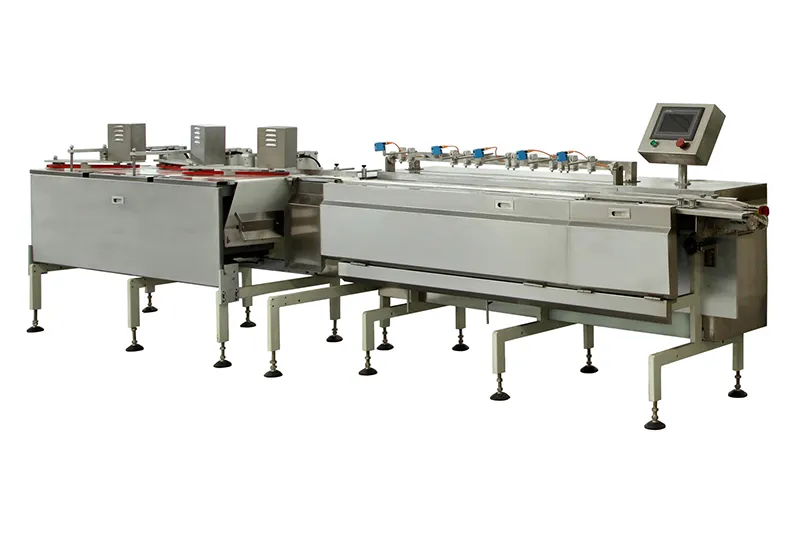 The feeding system of this packaging line adopts a servo-driven mechanism to eliminate spacing between products and ensure accurate positioning. Featuring an automatic product waiting function, which enables incoming products that are initially uneven to be redistributed more evenly and accurately into the conveyor forks. All actions operate in the required synchronized state, ensuring stable and continuous feeding.