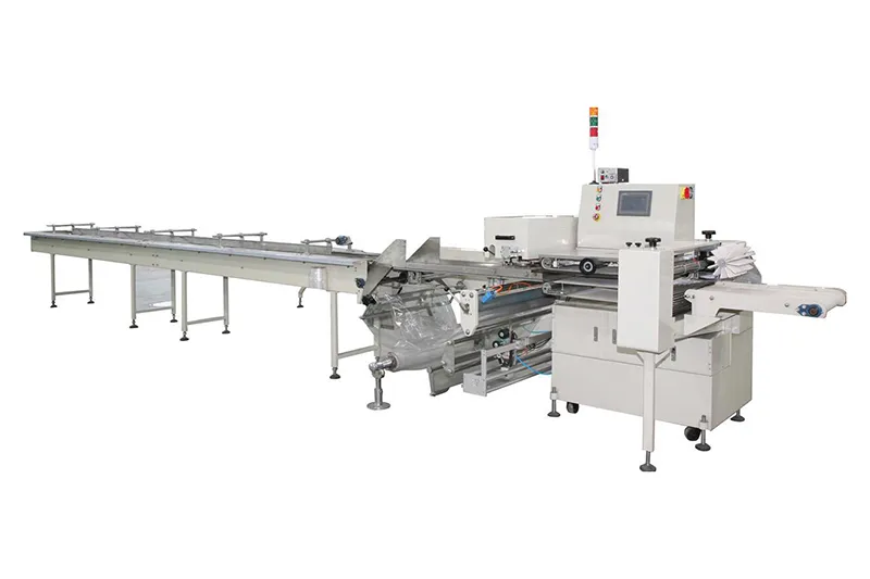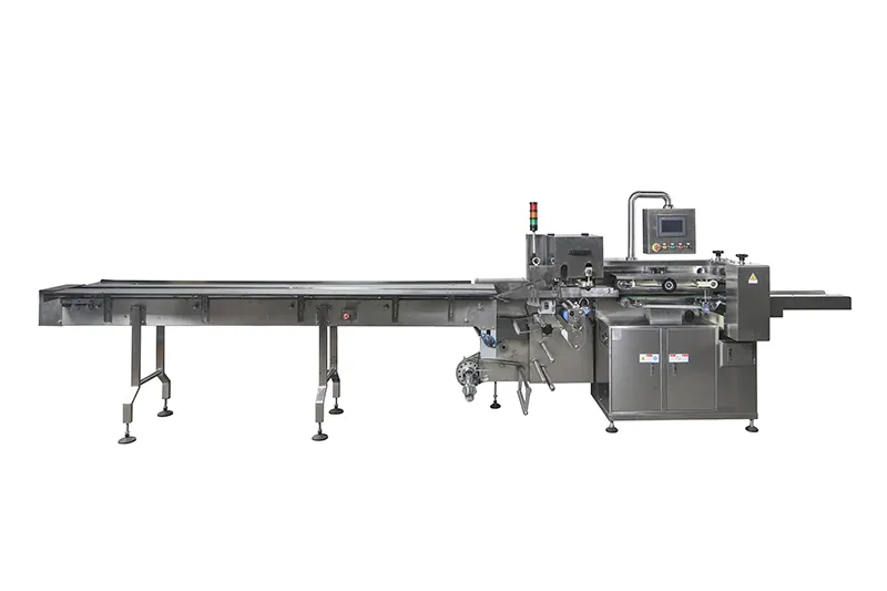 This horizontal flow wrapper adopts bottom film feeding, forming, and heat sealing, and is equipped with automatic film feeding, stepless speed regulation, and photoelectric registration, ensuring high efficiency, stable operation, and neat package appearance. In addition, the wrapping machine can be seamlessly integrated with the Songben five-pack palletizing machine, enabling full production line integration.