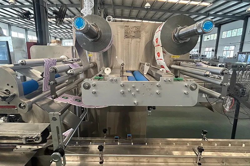 - PLC control system and a large full-color touch screen served as the control and drive core of the horizontal flow wrapper, enabling intelligent control of the entire process, including product feeding, film feeding, longitudinal sealing, transverse sealing, and finished product discharge.